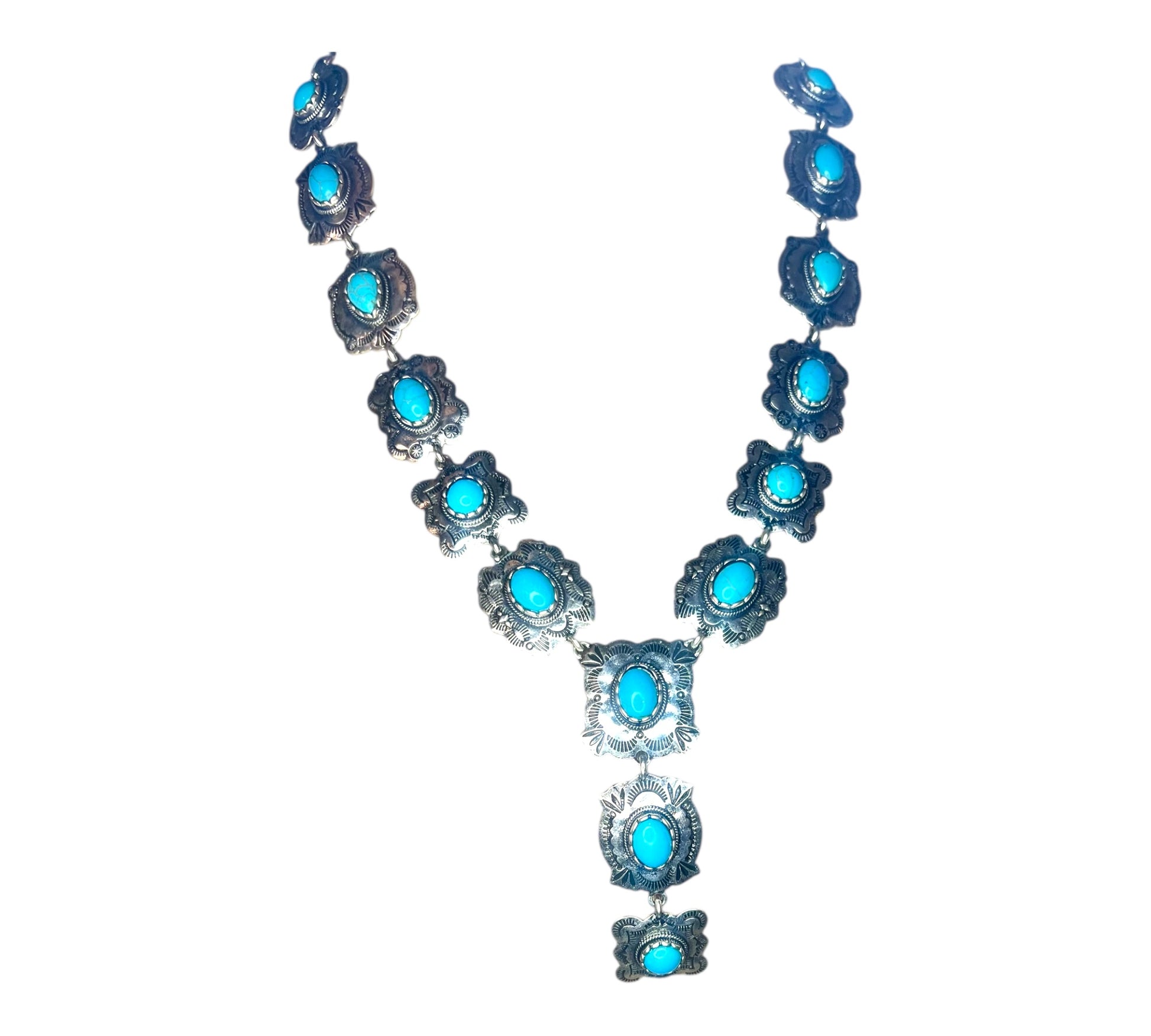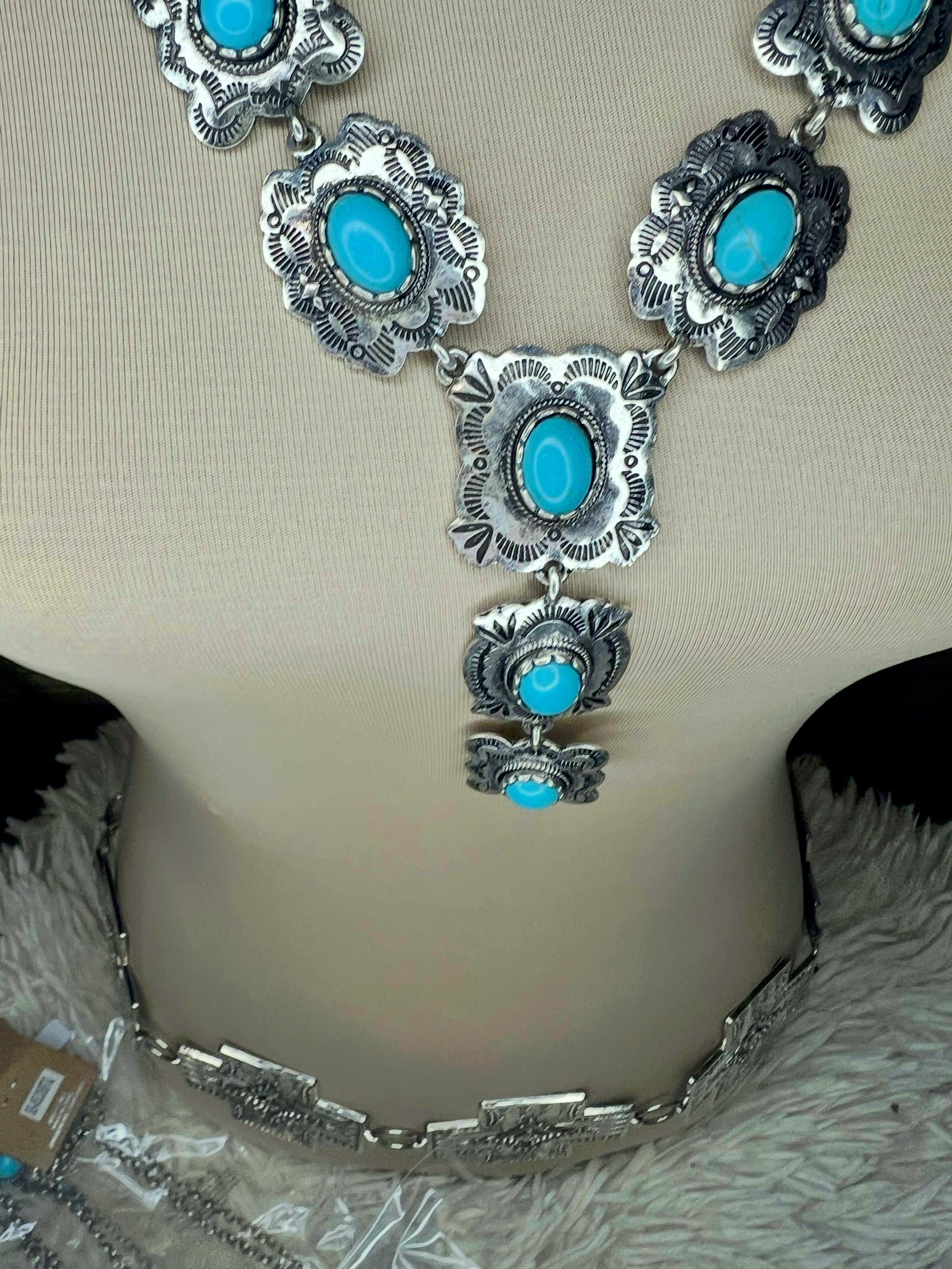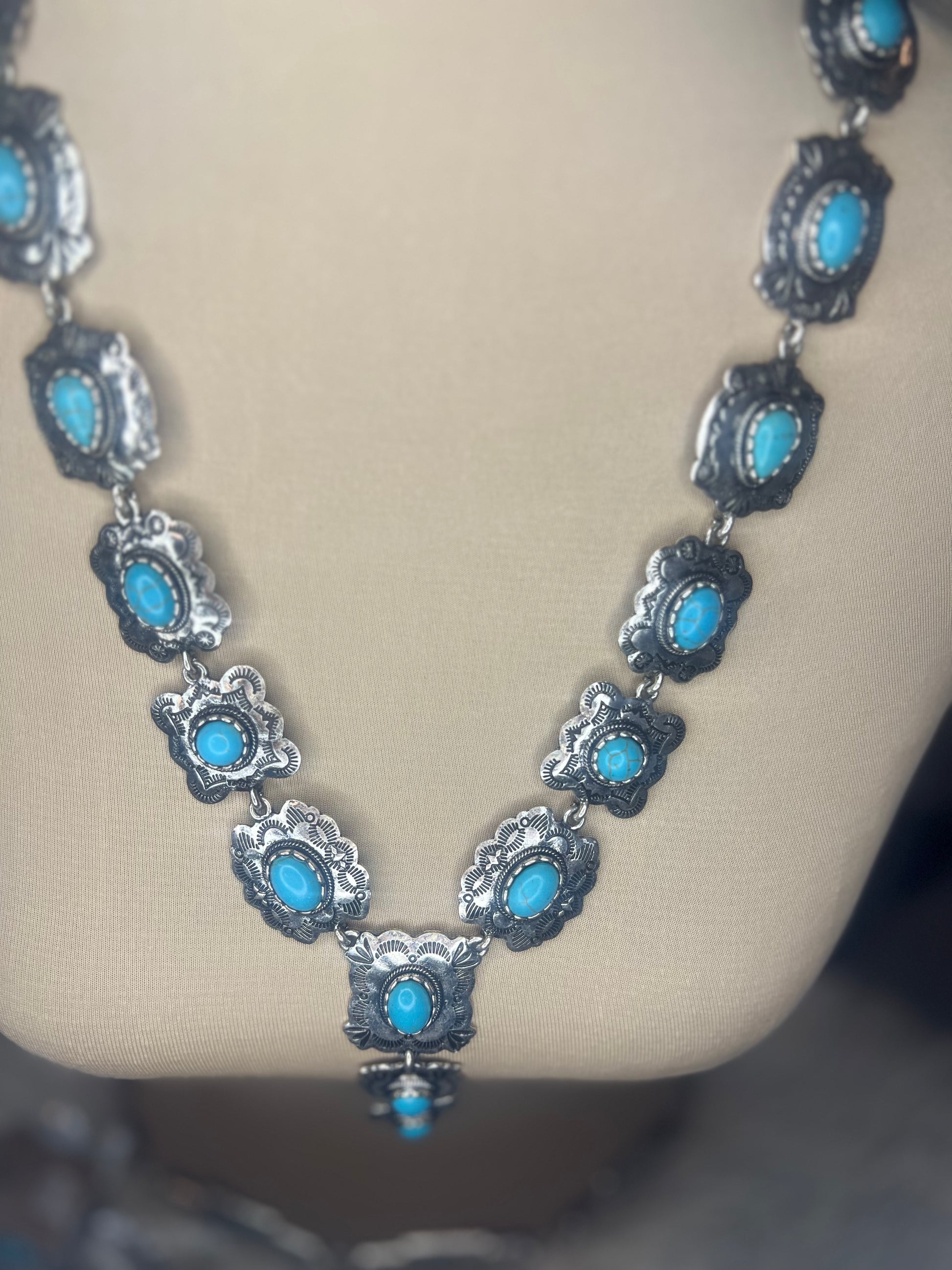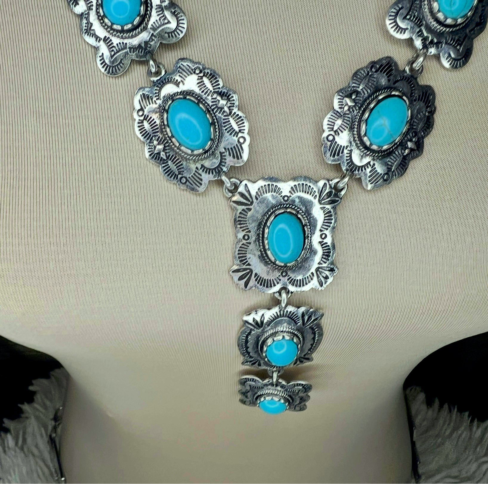 Boho Western 16 Etched turquoise Conches is what makes this Concho chain so amazing.