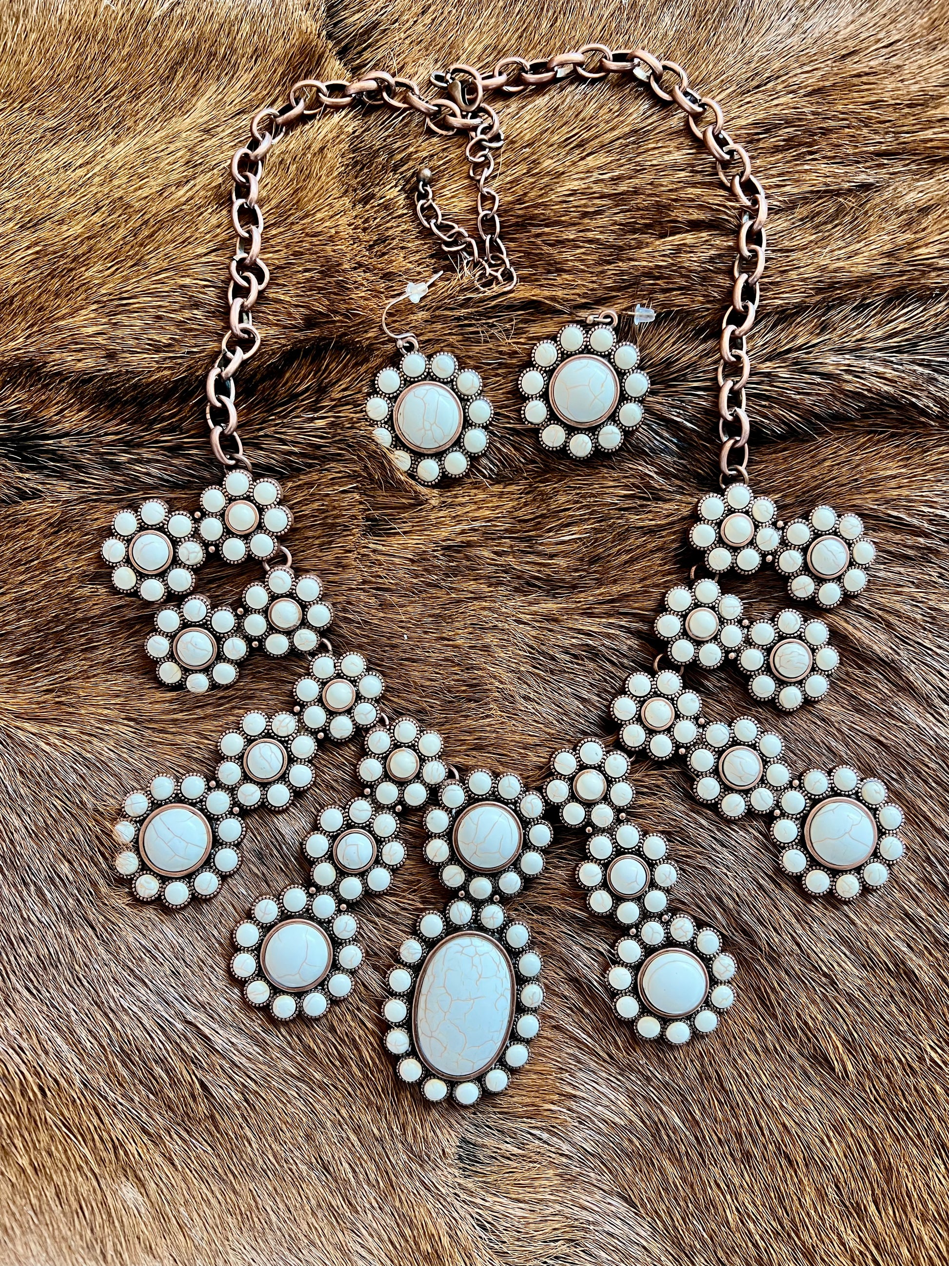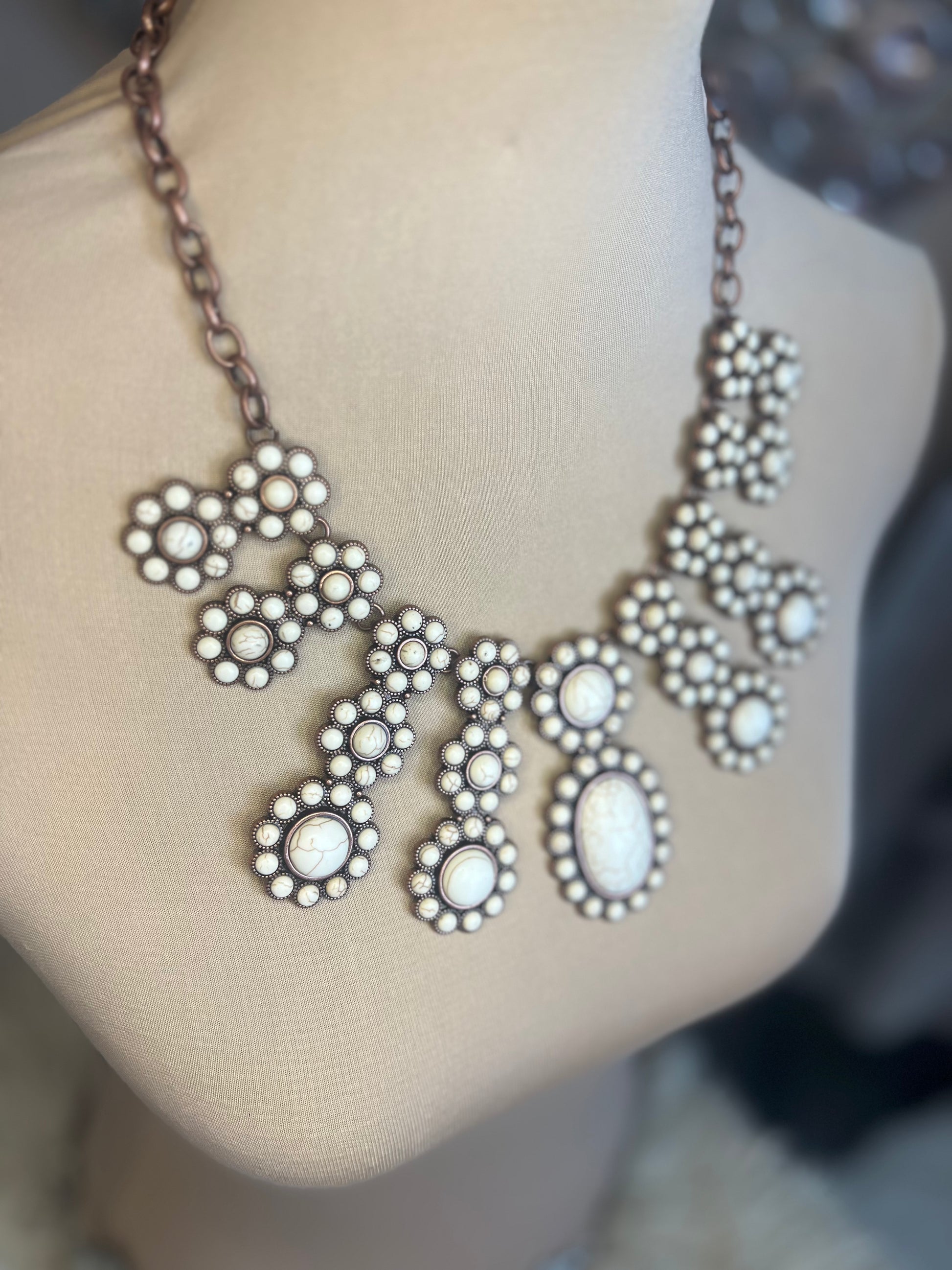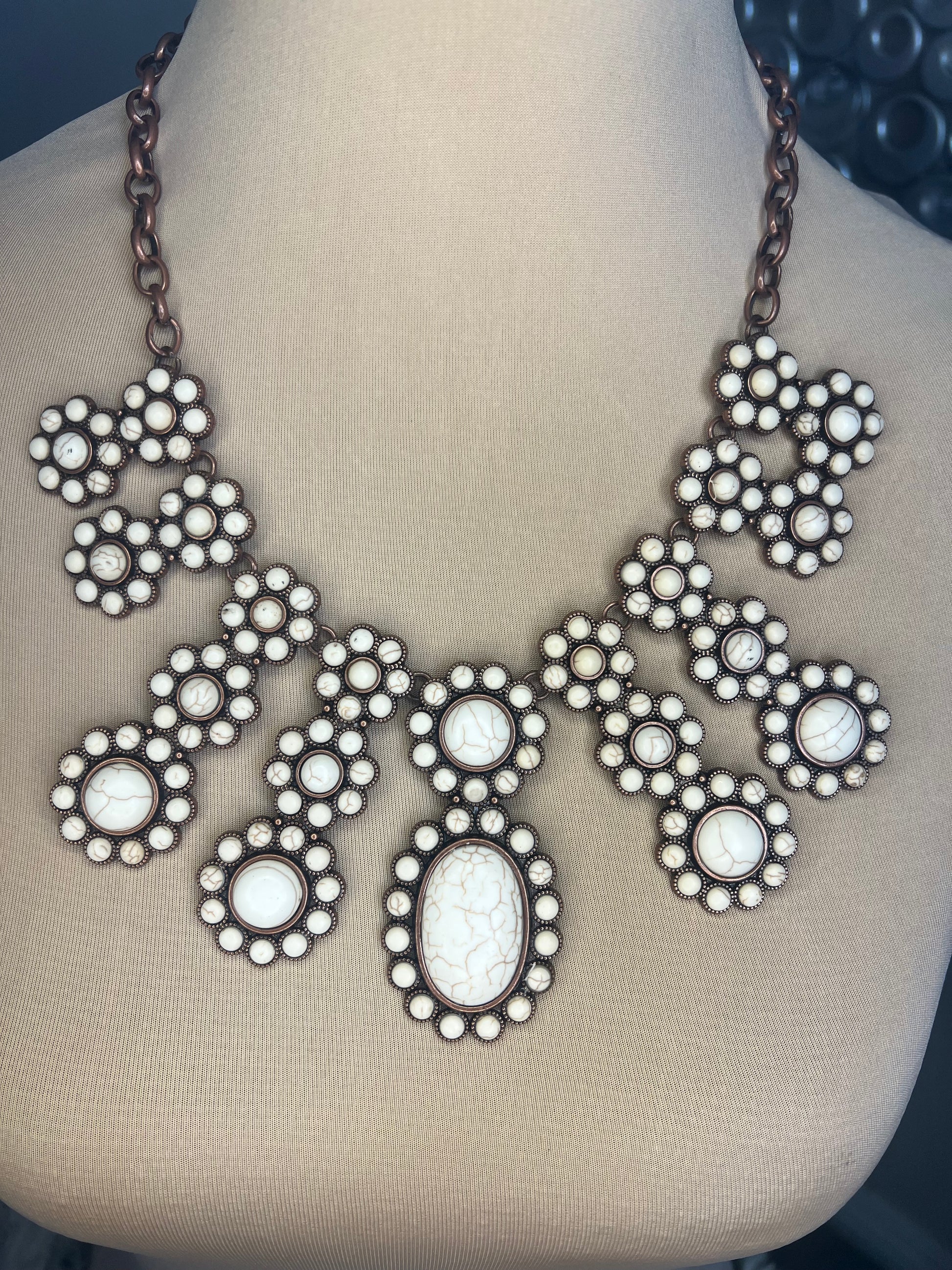 Beautiful full Bib necklace with white turquoise rembellishments.